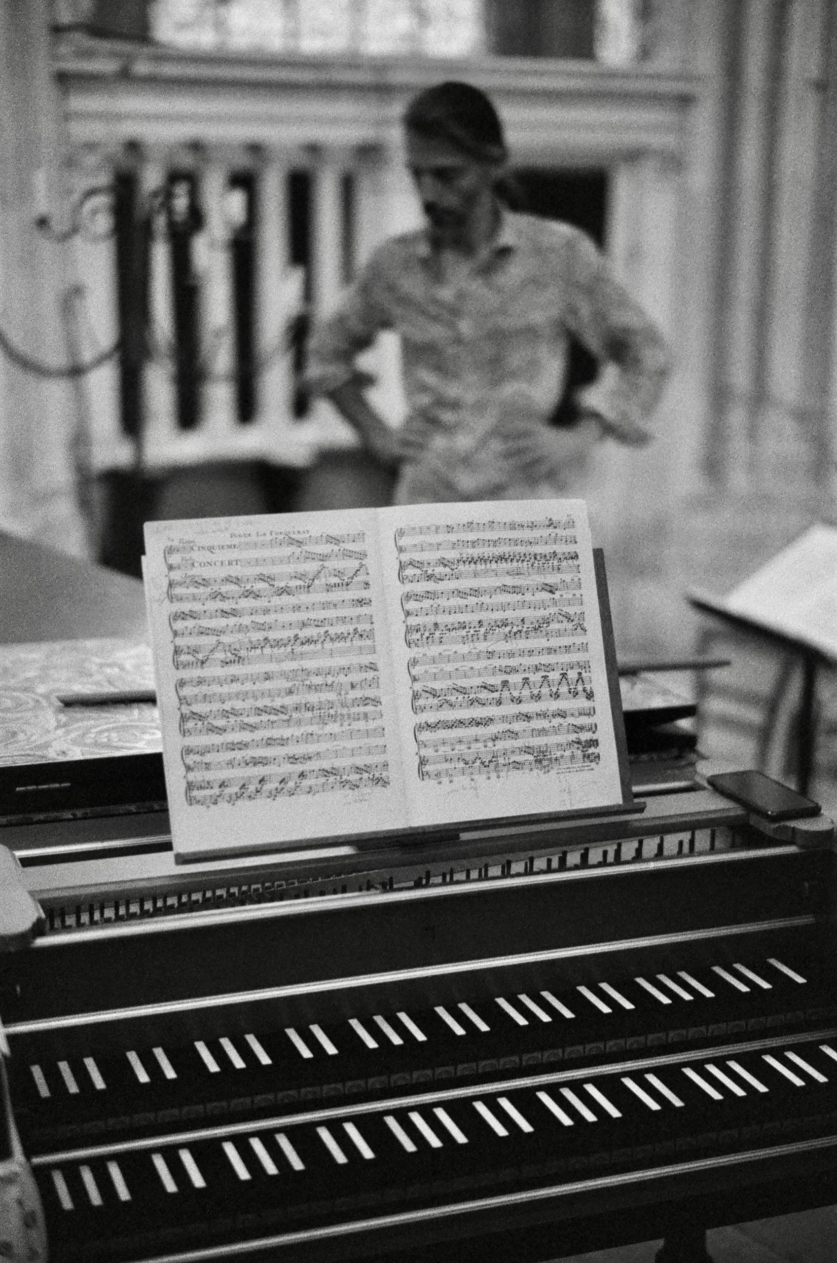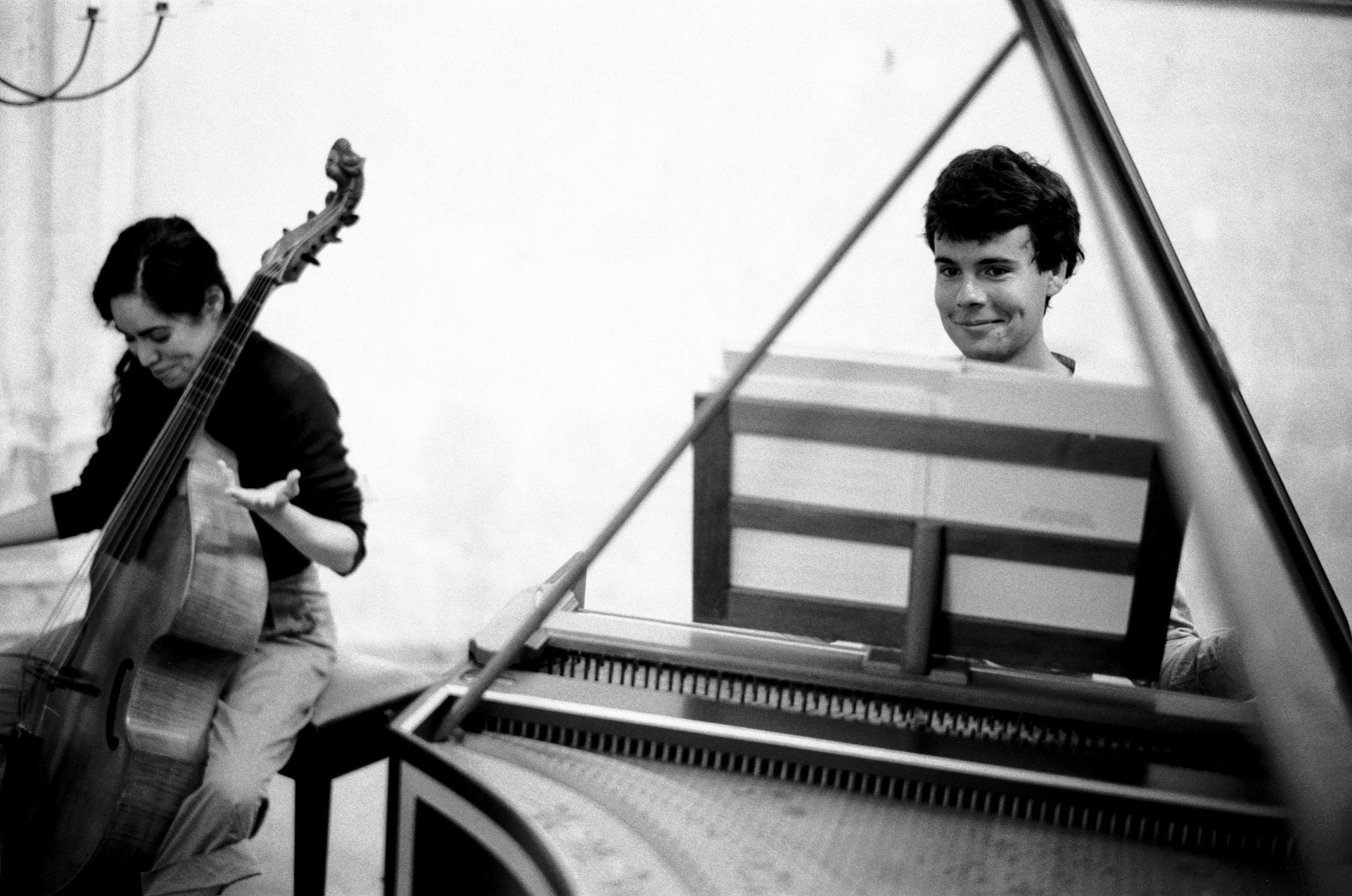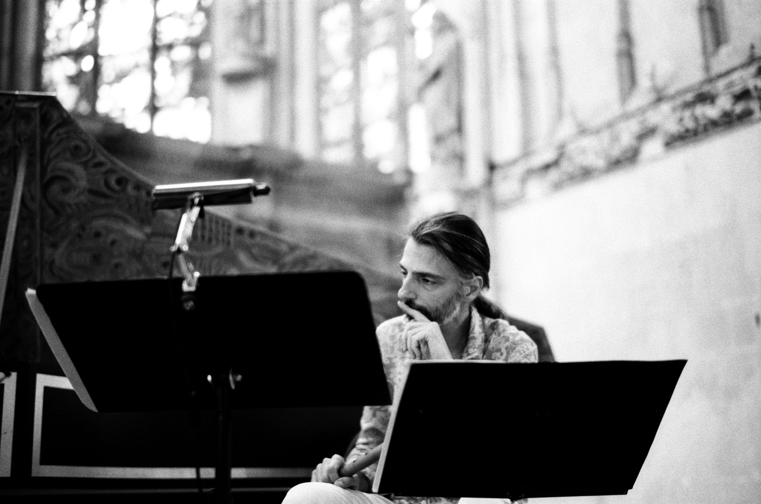 En complément de ses activités qui concernent toutes le spectacle vivant, l’Académie Bach a la particularité de développer, depuis 1998, un projet photographique de longue haleine avec le photographe Robin .H. Davies. Passionné par le travail des artistes, celui-ci accompagne de son regard la totalité de notre travail musical et théâtral. Exclusivement en noir et blanc, principalement en argentique, ses photographies posent un œil silencieux et qui vibre pourtant à l’unisson du monde de la musique sur les artistes, leurs instruments, les lieux et la lumière qui les aident à surgir, saisissant gestes et méditations secrètes, instants de pause et de recueillement, rencontres minuscules, tous ces phénomènes d’échange bouleversants qui rendent unique le temps de l’offrande musicale, non seulement lors de ses grandes épiphanies, mais dans le travail quotidien des répétitions. Ce répertoire visuel est une des richesses de l’Académie Bach, sa mémoire oculaire. Il accompagne notre communication et lui donne son ton, posant la voix propre, croyons-nous, de l’Académie Bach, entre souci de l’archive et recherche, à chaque instant, de la fulgurance artistique.